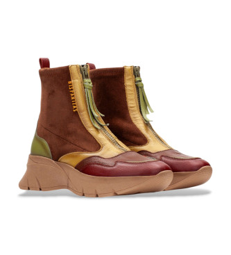 Botín sport que destaca por su comodidad y estilo urbano. Suela con volumen de 5 cm que proporciona amortiguación y soporte. Combinación original de materiales y tonos para un diseño moderno y versáti...