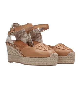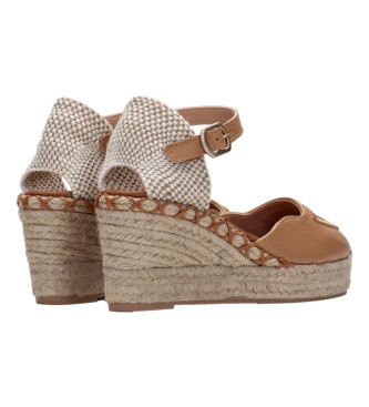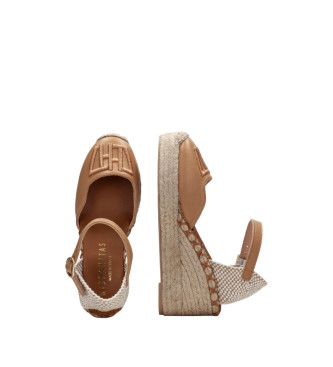 Hispanitas para mujer. HV243449 Alpargatas de piel Sofia 5 marrón roto -Altura tacón 5cm-