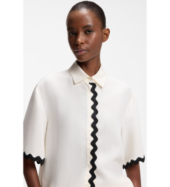 Esta blusa HUGO Mujer relaxed fit de diseño veraniego con cierre oculto se ha mezclado con lino suave. Llamativa cinta en zigzag para un contraste moderno. Relaxed fit Cuello clásico Cuello clásico Ma...