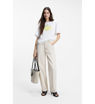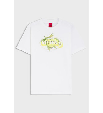 HUGO para mujer. 50561264 Camiseta de punto de algodón con ilustración de logo blanco (M), Casual, Manga corta