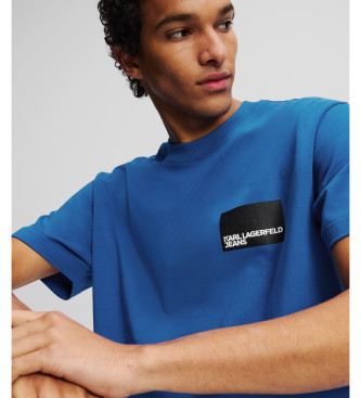 Karl Lagerfeld para hombre. A1M17001 Camiseta Ilustración pequeña azul (S), Casual, Algodón, Manga corta