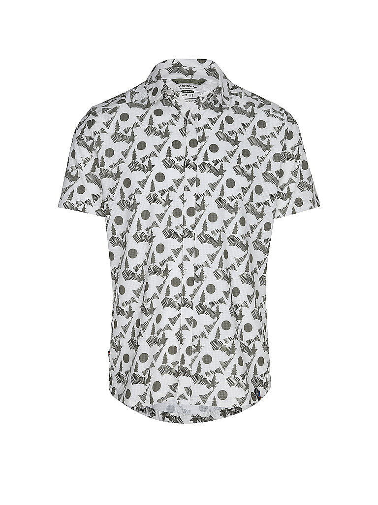 Camisa de hombre Cuello Kent Manga corta Tapeta de botones oculta Estampado integral Corte regular Material: 90% poliéster reciclado, 10% elastano Nombre del color: Chalk/Cypress