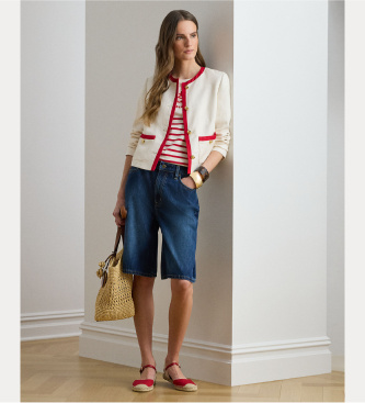 Lauren Ralph Lauren para mujer. 200P08848001 Blazer de sarga de mezcla de lino blanco crema