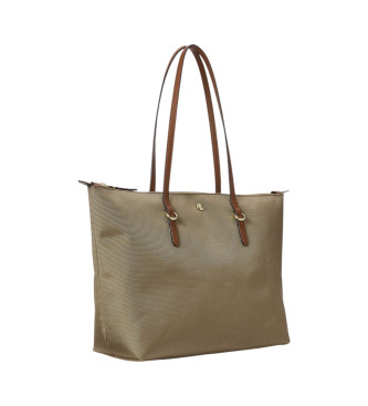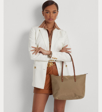 Lauren Ralph Lauren para mujer. 431916737003 Bolso tote mediano de nylon Keaton marrón (OSFA), Casual, Sostenible