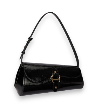 Lauren Ralph Lauren para mujer. 431P04068001 Bolso ancho Tasha mediano de charol negro (OSFA), Casual, Clásico, Piel