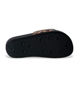 Sandalia plana de pala ancha con estampado leopardo y detalle dorado de Guess. Un calzado que combina la comodidad del diseño slide con una actitud atrevida y glamurosa, perfecto para elevar looks de ...