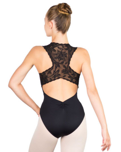 MAILLOT GINGER de la marca Ballet Rosa Maillot de la colección CHANTILLY Confeccionado en microfibra y malla bordada con detalles florales en la parte trasera Cuello pico con cierre de cremallera d...