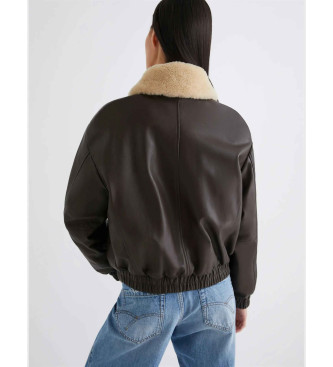Marella para mujer. 2523446034200 Bomber de piel Scandio marrón