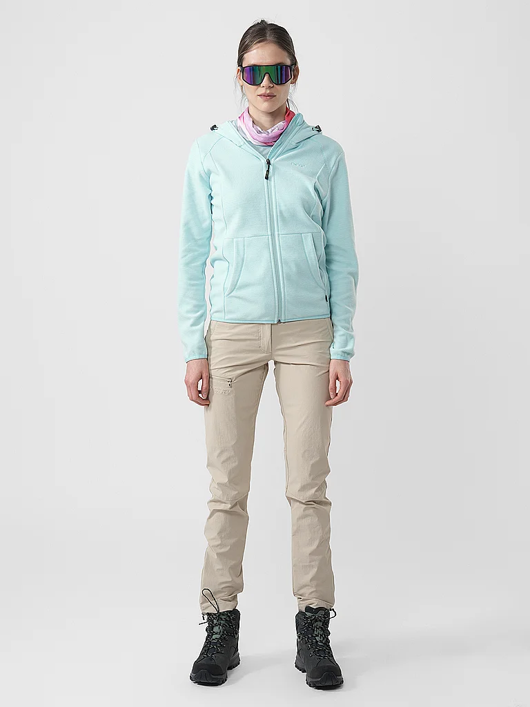 Confeccionada en suave forro polar Transpirable y cálida Material elástico para una agradable libertad de movimiento Corte recto Capucha con cordón Cuello alto con protección para la barbilla Cremalle...