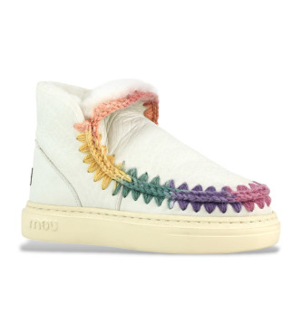 Mou para mujer. MU.FW411007B Botines de piel Eskimo sneaker bold rainbow stitching beige, multicolor