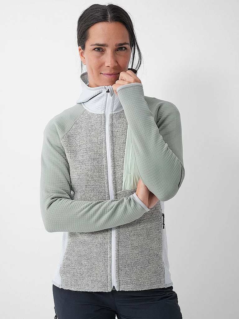 ORTOVOX Chaqueta polar con capucha de punto clásico para mujer gris claro