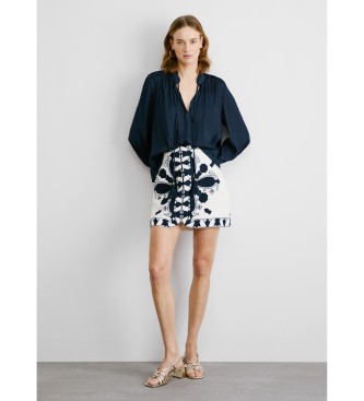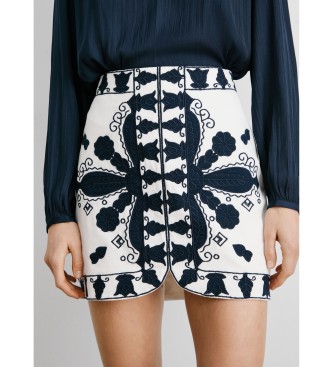 - Falda corta en lona de algodón - Cintura entallada - Detalles bordados florales en contraste de colores - Pequeña abertura frontal en bajo - Costuras laterales. Ref.: PL901200, Color: Negro, Color: ...