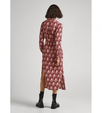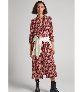 Pepe Jeans para mujer. PL953362 Vestido Gloria rojo (S), Casual, Viscosa, Manga larga, Sostenible