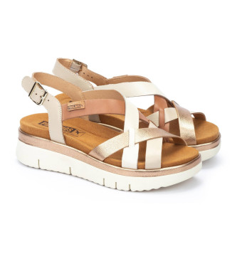 Pikolinos para mujer. W4N-0650C1 Sandalias de Piel Palma beige -Altura cuña 4,5cm-