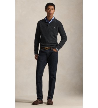 Polo Ralph Lauren para hombre. 710979110006 Jersey de algodón y lana con cuello polo gris oscuro (S), Casual, Clásico