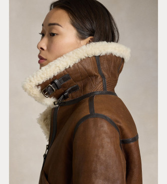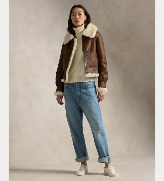 Polo Ralph Lauren para mujer. 211910038001 Bomber de piel Aviator marrón (M), Casual