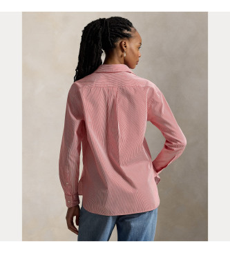 Polo Ralph Lauren para mujer. 211910743500 Camisa de algodón a rayas rojo (M), Casual, Manga larga