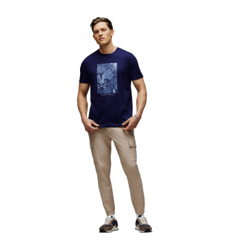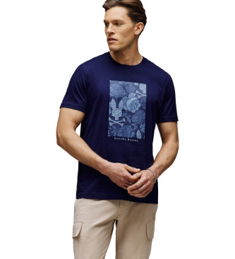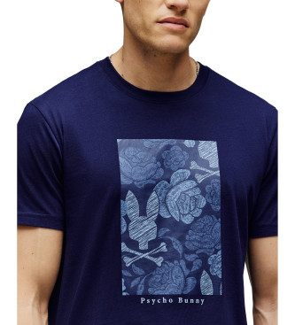 Camiseta de la marca Psycho Bunny en color azul marino, diseñada para aportar estilo y comodidad en tu día a día. Presenta un estampado frontal con efecto floral y el icónico logo de la firma, que le ...