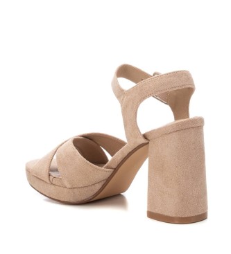 Sandalia de mujer, de la marca Refresh. Fabricada en suave antelina. Modelo de doble pala cruzada con pulsera al tobillo. Cierre mediante hebilla forrada del mismo material que el corte. Tacón ancho d...