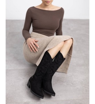 Bota de mujer, de la marca Refresh. Fabricado en suave antelina con un elegante dibujo marcado por pespunte, añadiendo un toque artesanal. Cierre de cremallera. Tacón tipo cowboy de 5 cm de altura. Co...