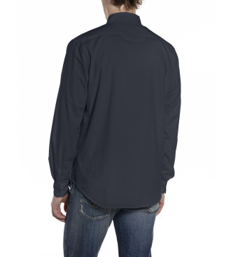 Replay para hombre. M4144.000.85486 Camisa de Popelina de algodón marino (M), Casual, Clásico, Manga larga