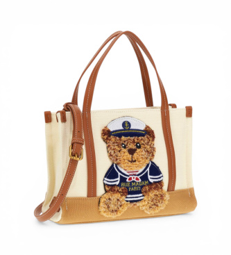 Minibolso de compras suave de lona con un diseño divertido y contemporáneo, enriquecido con el nuevo bordado de efecto felpa del osito de peluche Sailor Marvin, que le añade un toque original y entrañ...