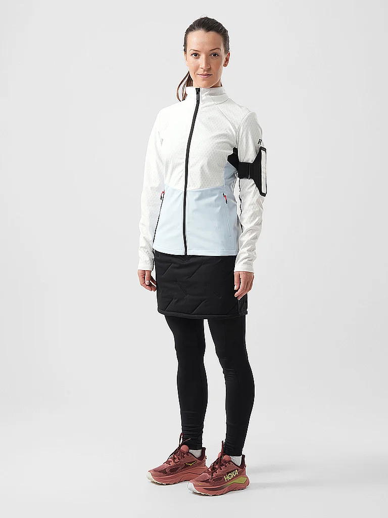 Falda Rukka para mujer. Cremallera lateral. Cintura elástica. Cintura alta. Costuras selladas sin puntadas. Esta prenda híbrida se ha confeccionado con diferentes materiales para crear un equilibrio e...