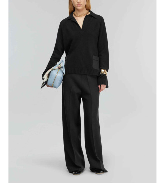 Semicouture para mujer. Y5WG21 Polo Acantha negro (L), Casual, Lana, Manga larga