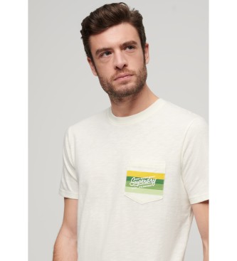 Superdry para hombre. M1011904A Camiseta a rayas con logo Cali blanco roto (M), Casual, Algodón, Manga corta