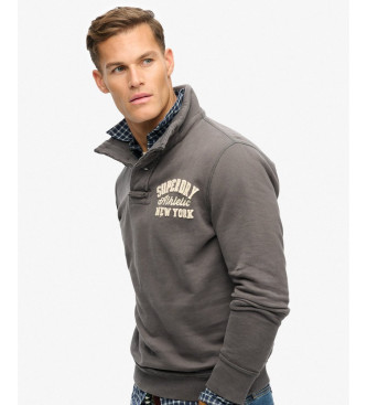 Superdry para hombre. M2014013A Sudadera Vintage Athletic Half Button gris (M), Casual, Algodón