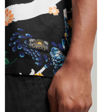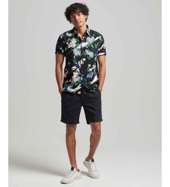 Superdry para hombre. M4010620A Camisa hawaiana marino (S), Negro, Casual, Modal, Manga corta