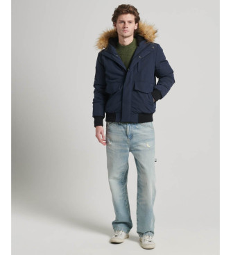 Superdry para hombre. M5011742A Cazadora bómber acolchada con capucha Everest marino (L), Casual, Poliéster