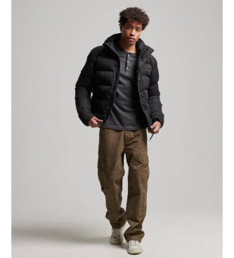 Superdry para hombre. M5011760A Chaqueta acolchada de microfibra con capucha Sports negro (XL), Casual, Poliéster