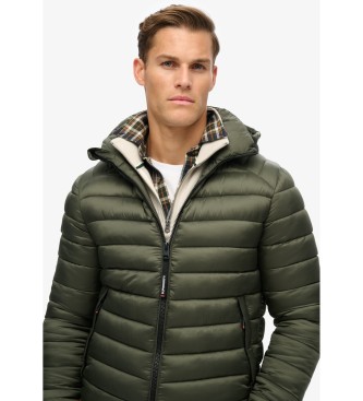 Superdry para hombre. M5011906A Chaqueta acolchada Fuji Sport con capucha verde (S), Casual, Sostenible, Nylon reciclado