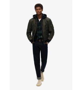 Superdry para hombre. M5012080A Chaqueta militar con capucha MA1 verde (M), Casual, Poliéster
