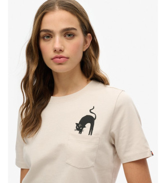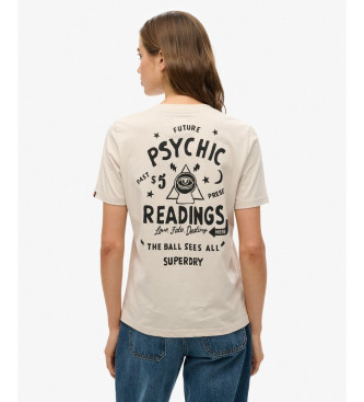 Superdry para mujer. W1011623A Camiseta Psychic Readings beige (M), Casual, Algodón, Manga corta
