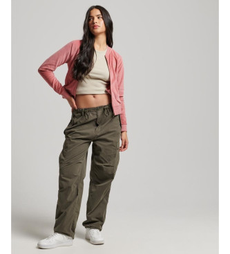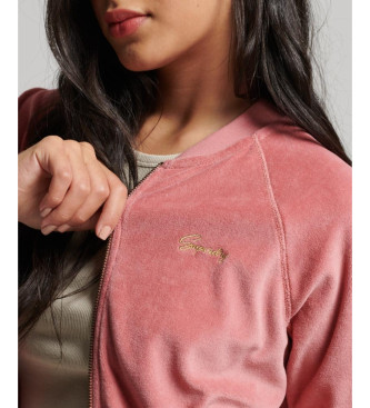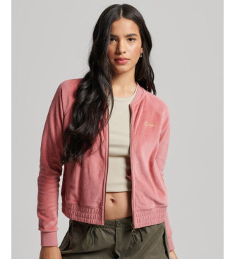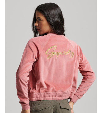 Superdry para mujer. W2011936A Chaqueta de béisbol de terciopelo con cremallera y bordado rosa (M), Casual, Algodón, Sostenible