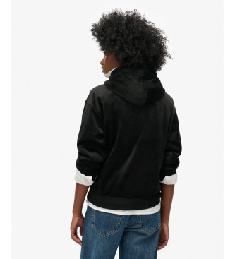 Superdry para mujer. W2012168A Sudadera con capucha de velvetón de corte holgado Country Club negro (XL), Casual, Poliéster