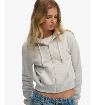 Sudadera con capucha y cremallera de Superdry en gris, una pieza casual y moderna que combina el confort del algodón suave con un diseño cropped y detalles cuidados que la elevan por encima del básico...