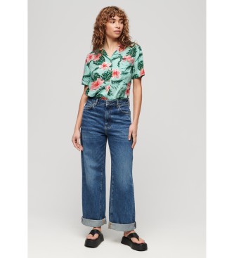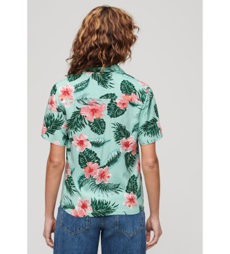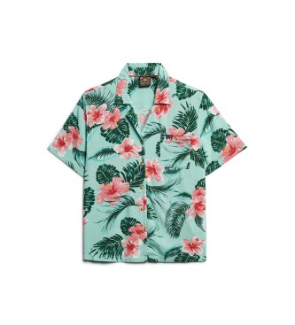 Superdry para mujer. W4010419A Camisa Beach Resort verde (XS), Casual, Viscosa, Manga corta