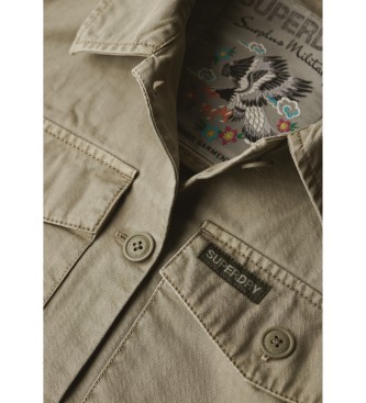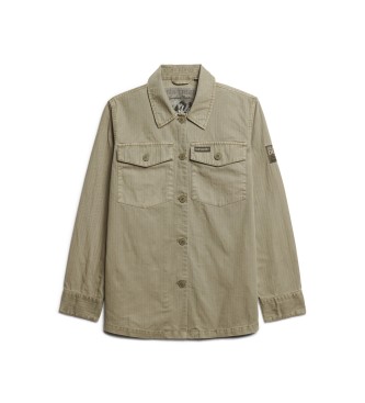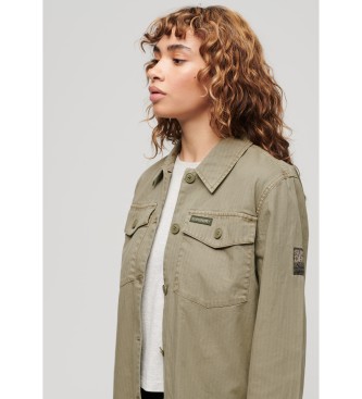 Superdry para mujer. W4010424A Sobrecamisa militar marrón verdoso (M), Casual, Verde, Algodón, Manga larga