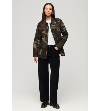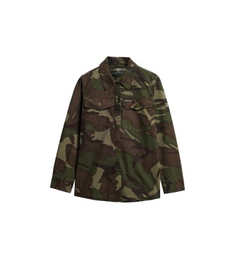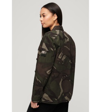 Superdry para mujer. W4010424A Sobrecamisa militar verde (M), Casual, Camuflaje, Algodón, Manga larga