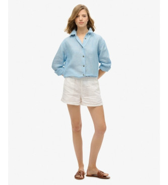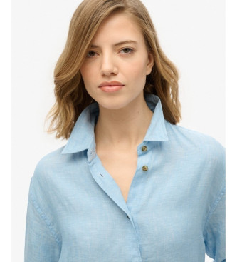 Superdry para mujer. W4010463A Camisa informal de lino con corte boyfriend azul (S), Casual, Manga larga