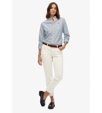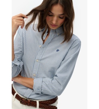 Superdry para mujer. W4010565A Camisa Slim Oxford azul (L), Casual, Algodón, Manga larga