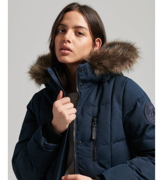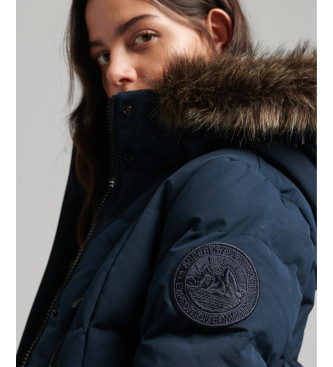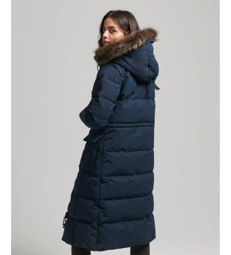 Superdry para mujer. W5010370A Abrigo largo de pelo sintético Everest marino (S), Casual, Poliéster, Sostenible