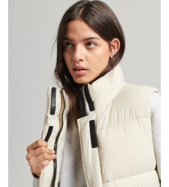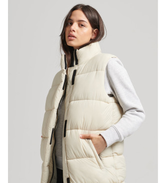 Superdry para mujer. W5011482A Chaleco largo acolchado Ripstop beige (M), Casual, Poliéster, Sostenible