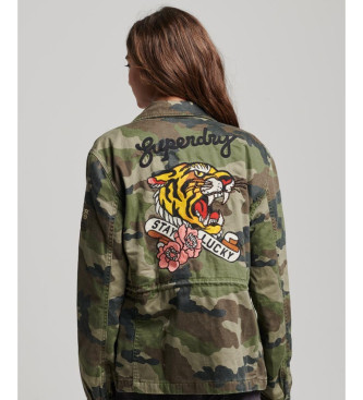 Superdry para mujer. W5011544A Cazadora militar M65 verde (L), Casual, Algodón