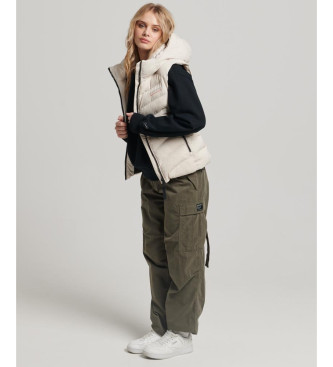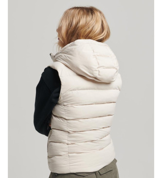 Superdry para mujer. W5011560A Chaleco acolchado de microfibra con capucha beige (S), Casual, Poliéster Reciclado, Sostenible