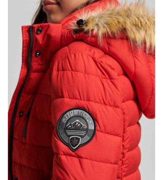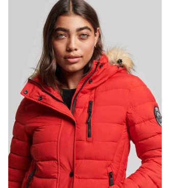Superdry para mujer. W5011565A Abrigo largo acolchado con capucha Fuji rojo (S), Casual, Poliéster Reciclado, Sostenible