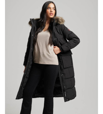 Superdry para mujer. W5011566A Abrigo largo acolchado Everest (S), Negro, Casual, Poliéster